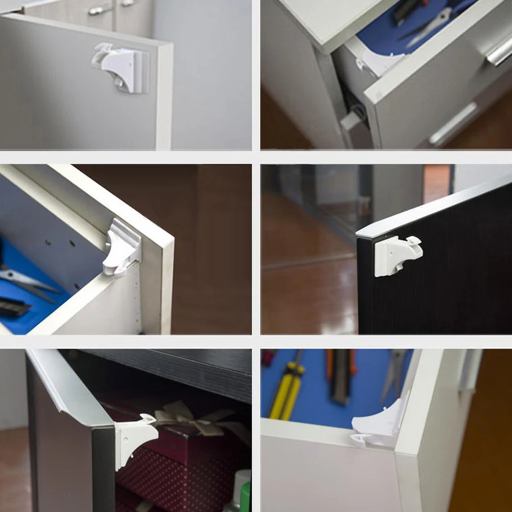 10 PCS/Set Magnetic Lock With Key Base Kitchen Bath Cabinet Drawer Cupboard Locks for Kids Safety C