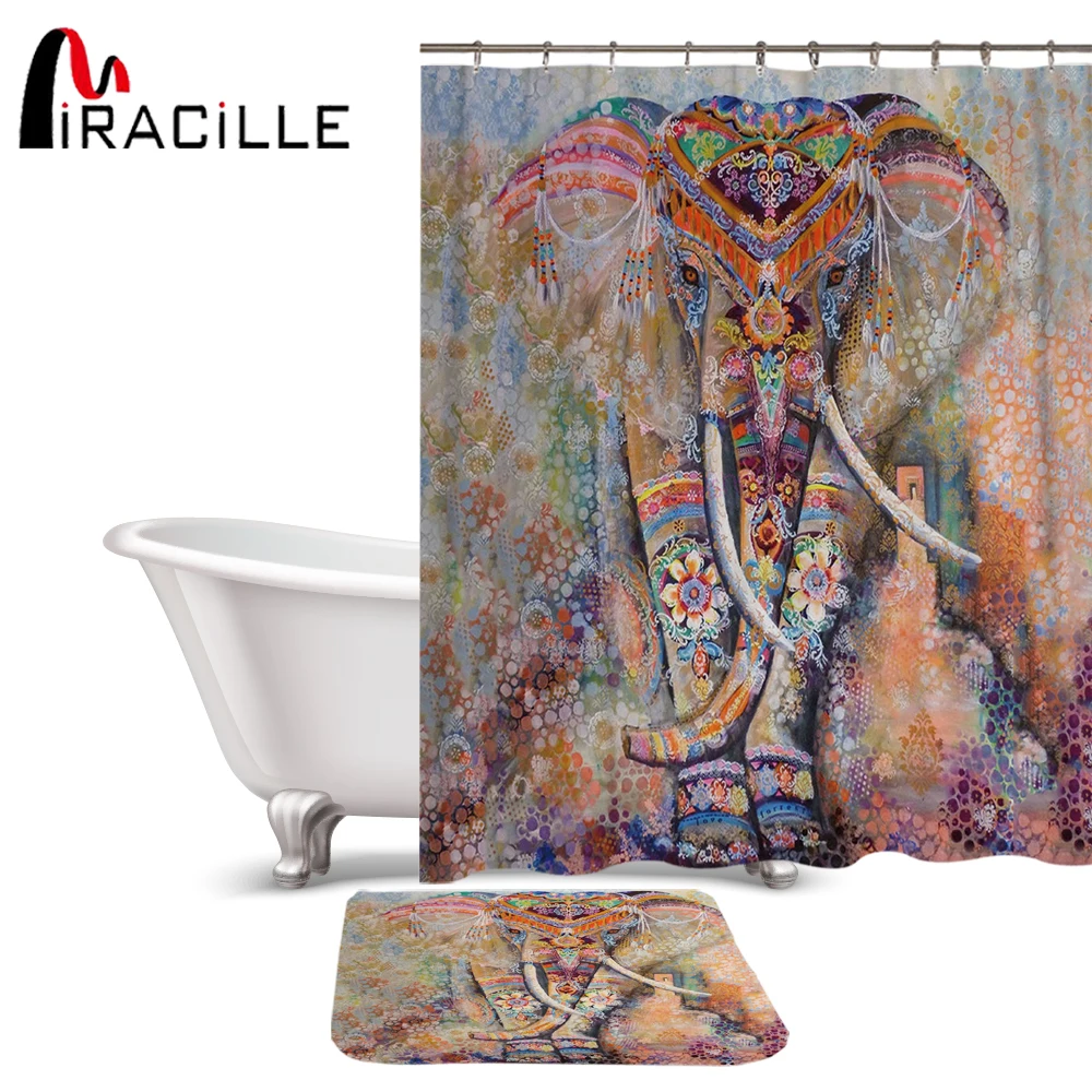 REVIEW TOP SELLER Miracille Indian Colorful Elephant Printed Waterproof Polyester Shower Curtain Coral Velvet Anti-sl