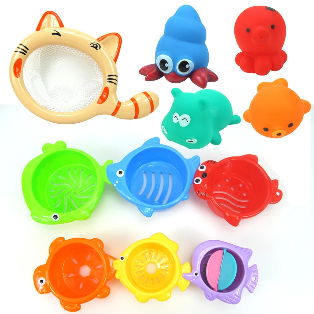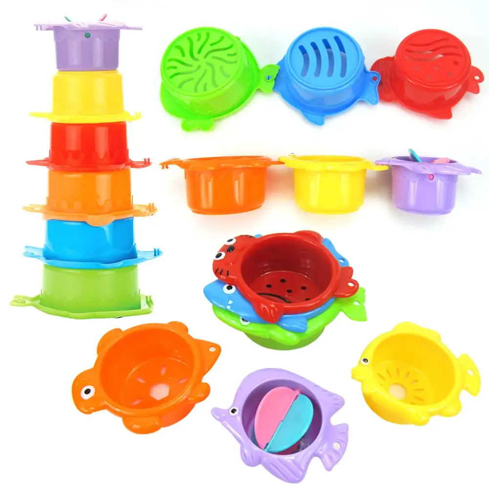 11Pcs Colorful Animal Bathroom Shower Stacking Cup Kids Baby Bath Water Play Toy