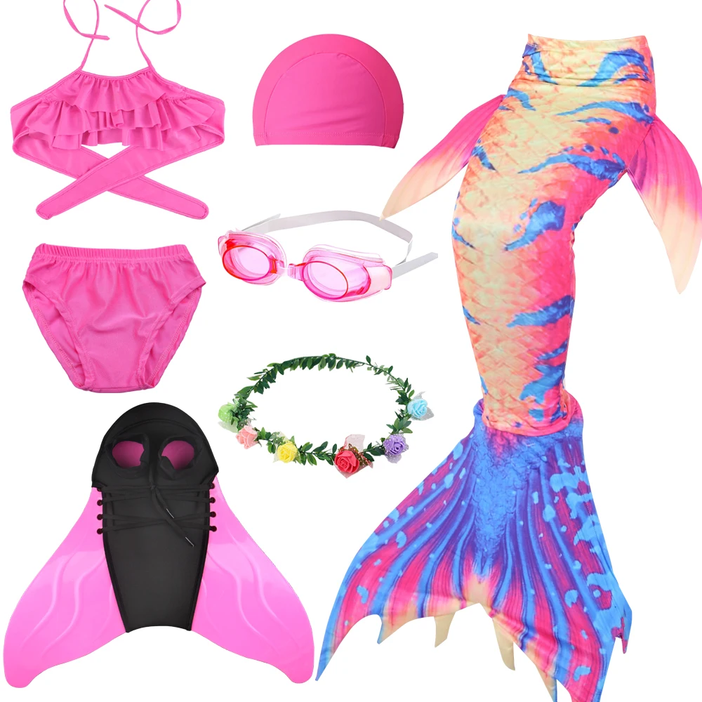 2019 7PCS/Set HOT Kids Girls Mermaid Tails with Fin Swimsuit Bikini Bathing Suit Dress for Girls Wi