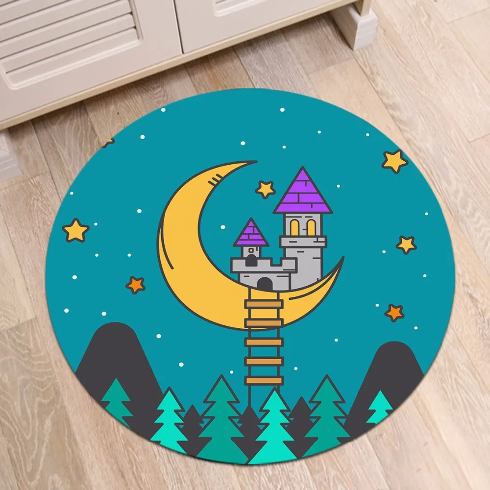 Kids Cartoon Moon Castle Round Rugs And Memory Foam Carpets for Baby Home Living Room Bedroom Hallw