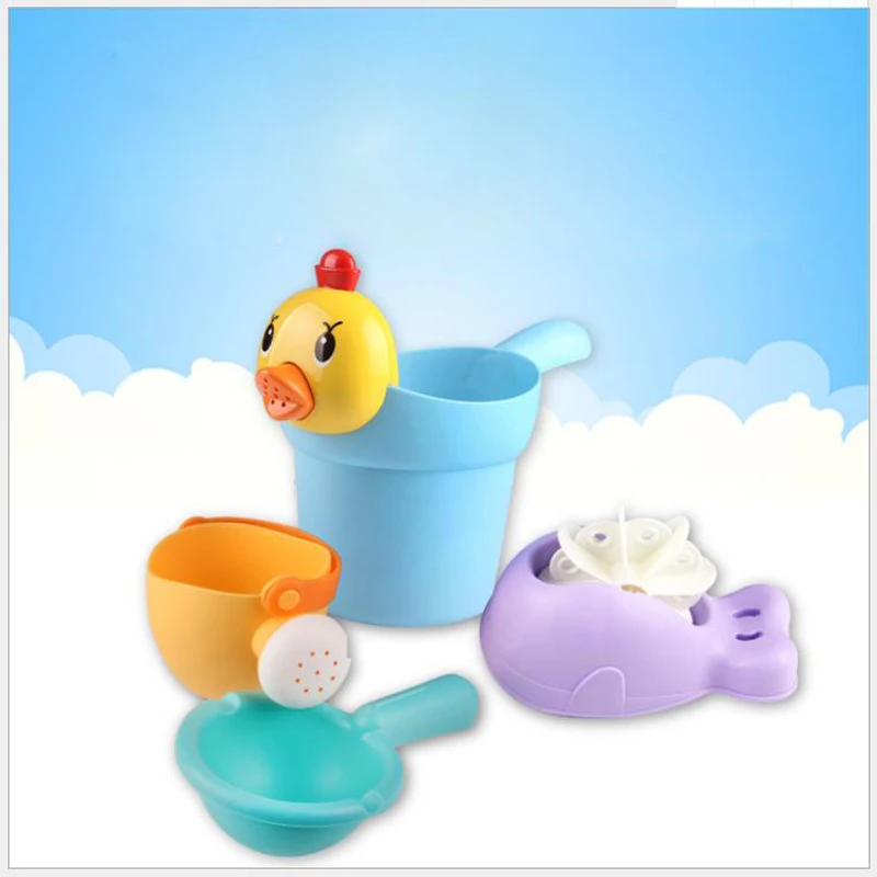 HOT SALE Bath bath children baby baby play water toy cute chicken shampoo water spoon toy four pieces of sty