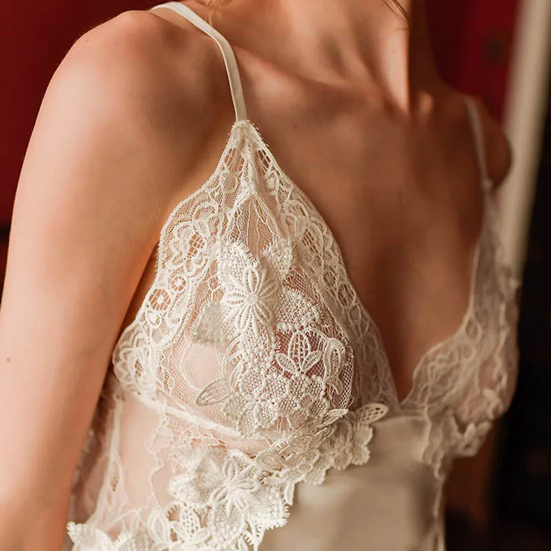 CINOON 3Pcs Women Sexy Silk Nightgown Embroidery Lace Bath Gown Nightdress Summer Sleepwear Wedding